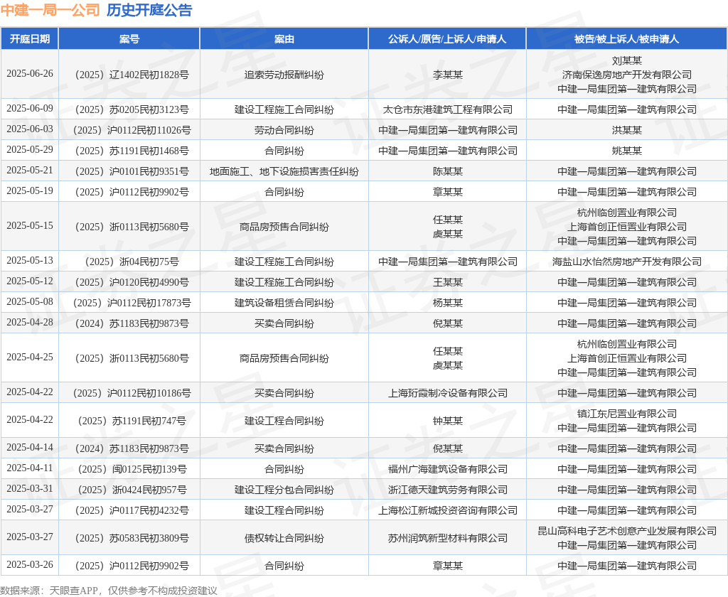 本站消息,根据天眼查APP显示,近日公布了一则中建一局集团第一建筑有限公司作为原告/上诉人的开庭公告,详细内容如下: